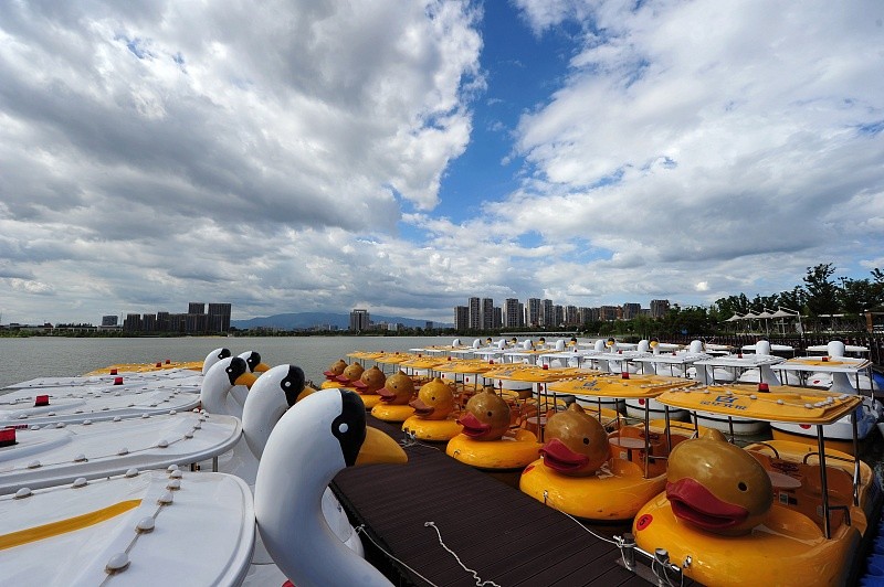 为了应对此次台风威胁,浙江、上海、江苏等地提前应对,浙江浙江后逐渐转向东北方向移动,向朝鲜半岛西部沿海靠近。图为8月3日,杭州西湖郭庄码头,成排的手划船、摇橹船停靠在岸边,暂停营业。